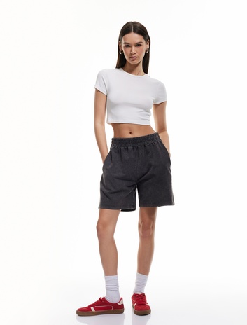 Cep Detaylı Beli Lastikli Yıkamalı Mini Şort Sepete Ekle