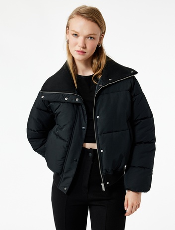 Fermuarlı Cep Detaylı Uzun Kollu Geniş Yaka Anorak Şişme Mont Sepete Ekle