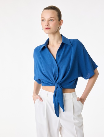 Kısa Kollu Klasik Yaka Bağlama Detaylı Crop Gömlek Sepete Ekle