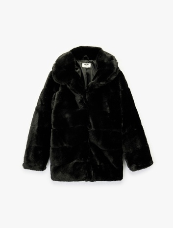 Uzun Kollu Cep Detaylı Bebe Yaka Suni Kürk Kaban Sepete Ekle