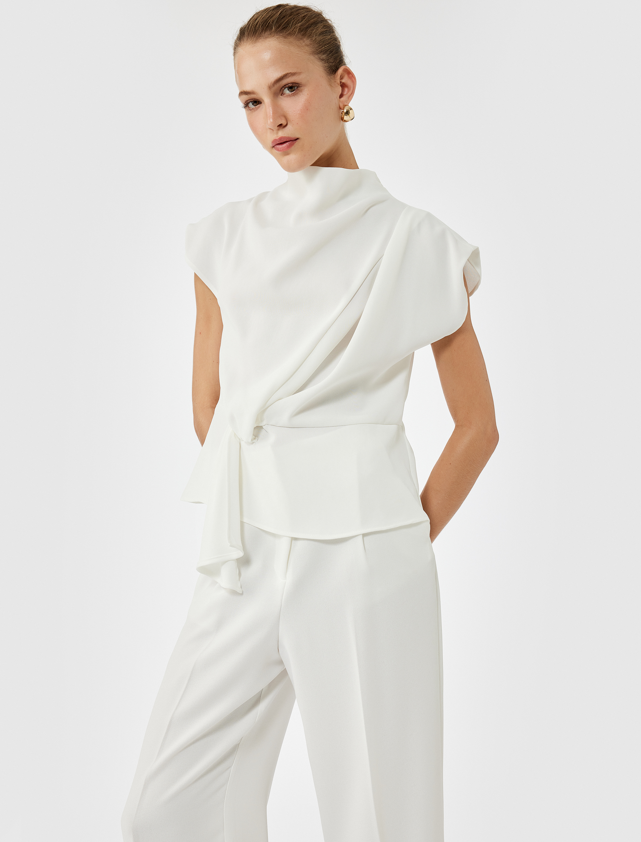 Kap Kol Düğüm Detaylı Dik Yaka Bluz