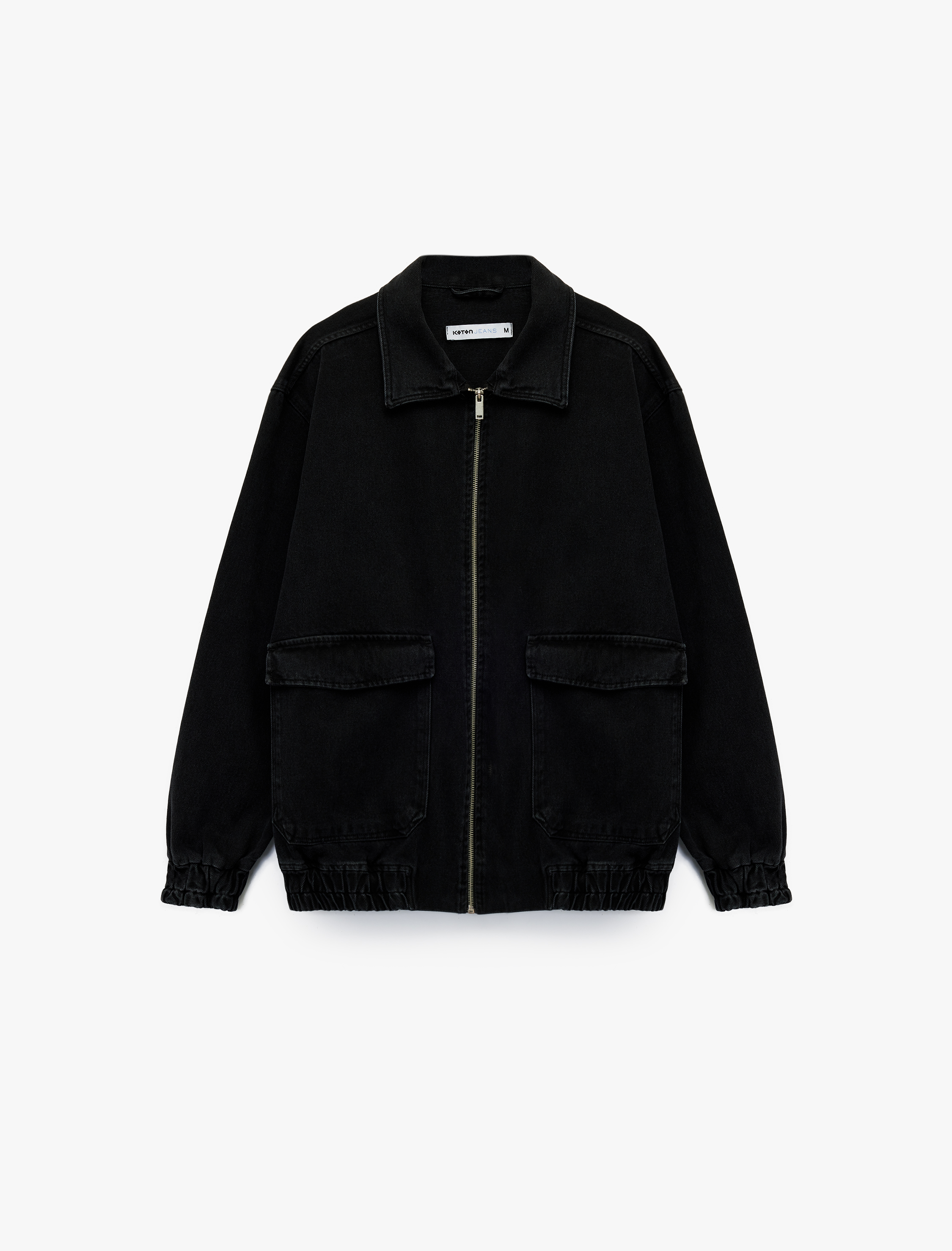 Kapaklı Cepli Regular Fit Pamuklu Gömlek Yaka Fermuarlı Bomber Jean Ceket   Kapaklı Cepli Regular Fit Pamuklu Gömlek Yaka Fermuarlı Bomber Jean Ceket   Kapaklı Cepli Regular Fit Pamuklu Gömlek Yaka Fermuarlı Bomber Jean Ceket