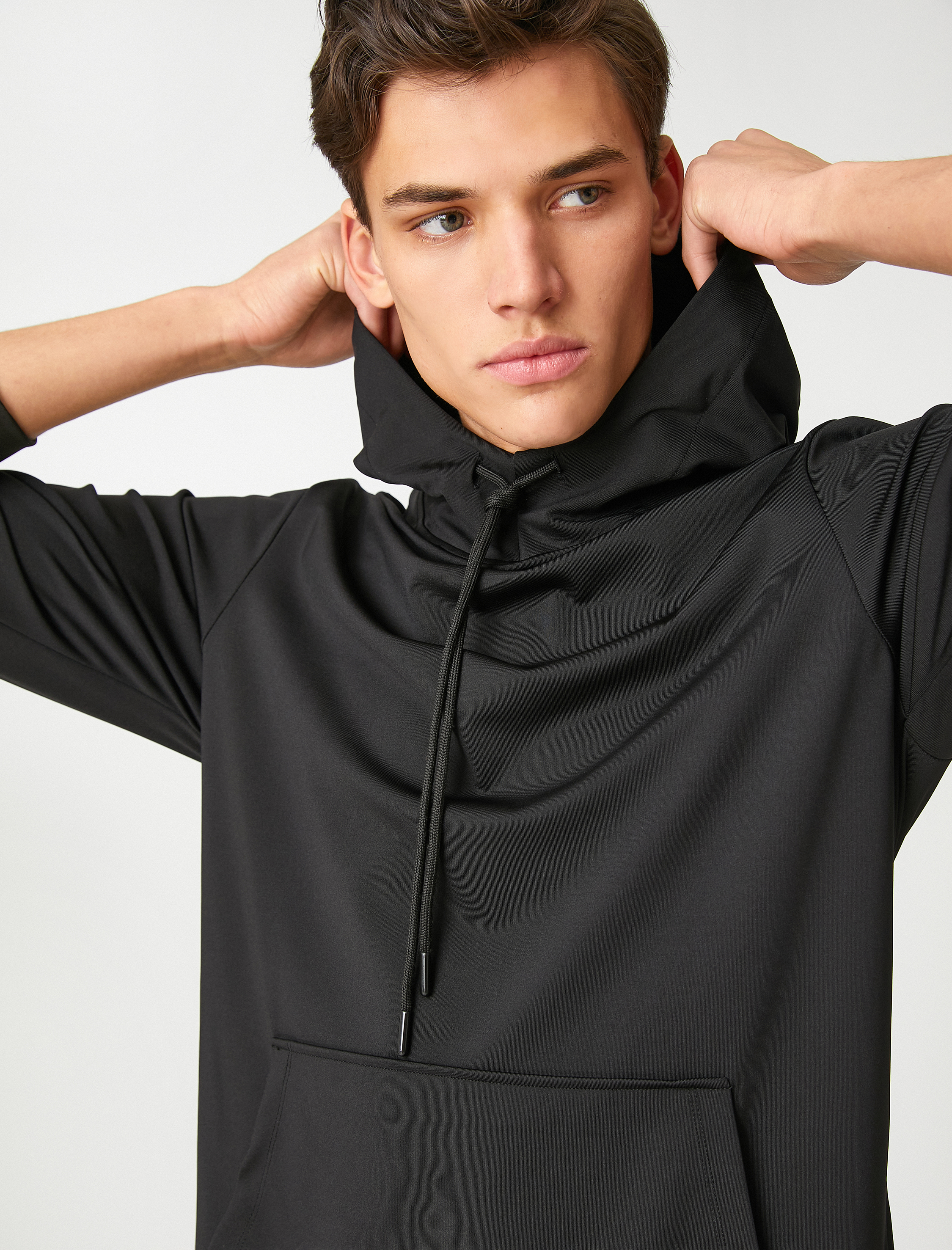 Kapşonlu Spor Sweatshirt Yığma Yaka Cep Detaylı Slogan Baskılı