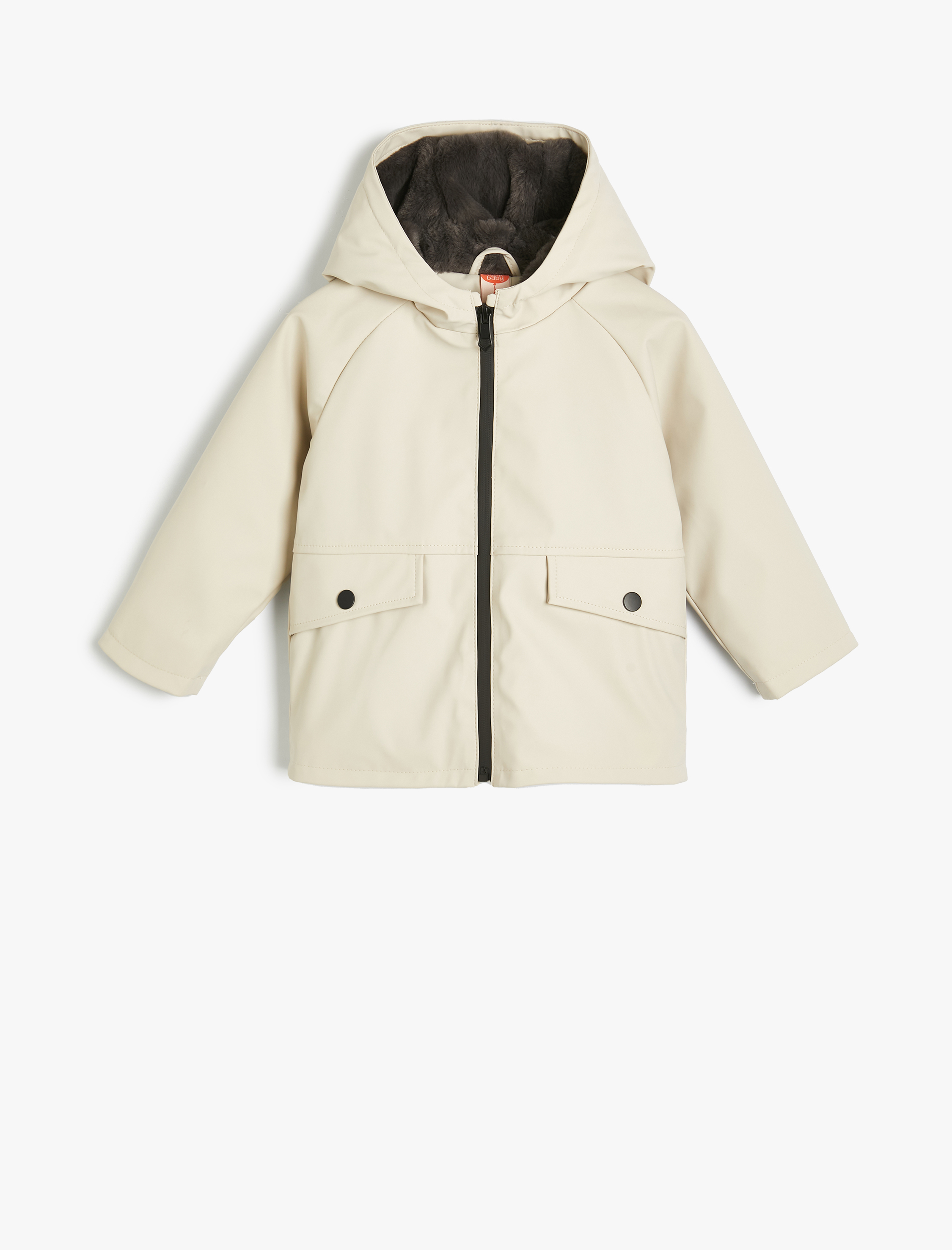 Erkek Bebek Kapşonlu Yağmurluk Peluş Astarlı Kapaklı Cepli