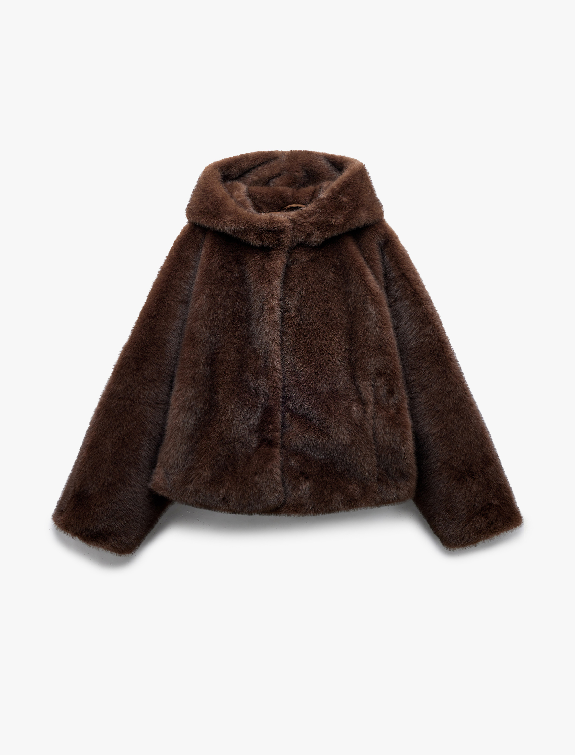 Kapüşonlu Cepli Oversize Suni Kürk Kaban
