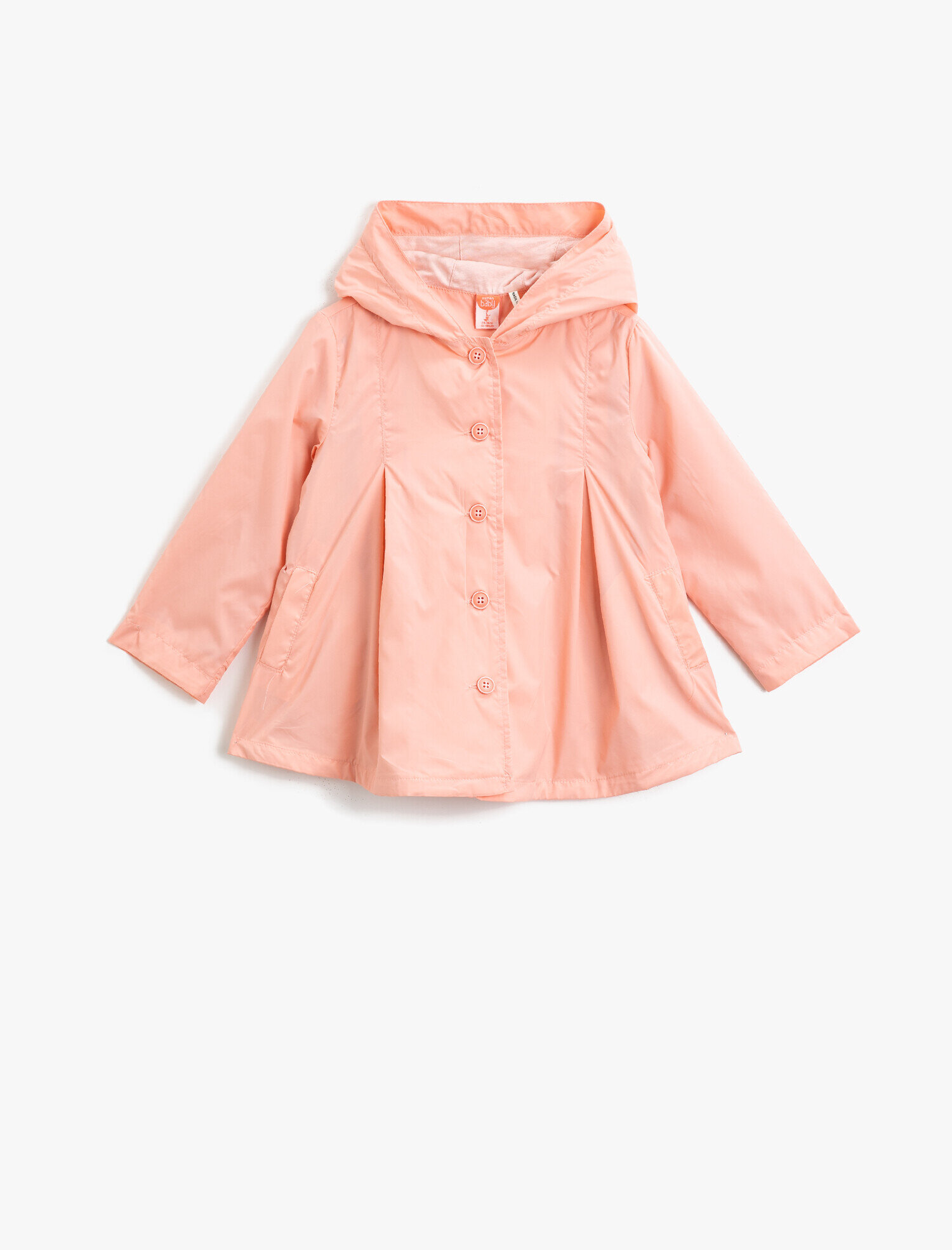 Kız Bebek Kapüşonlu Düğmeli Cepli Ceket