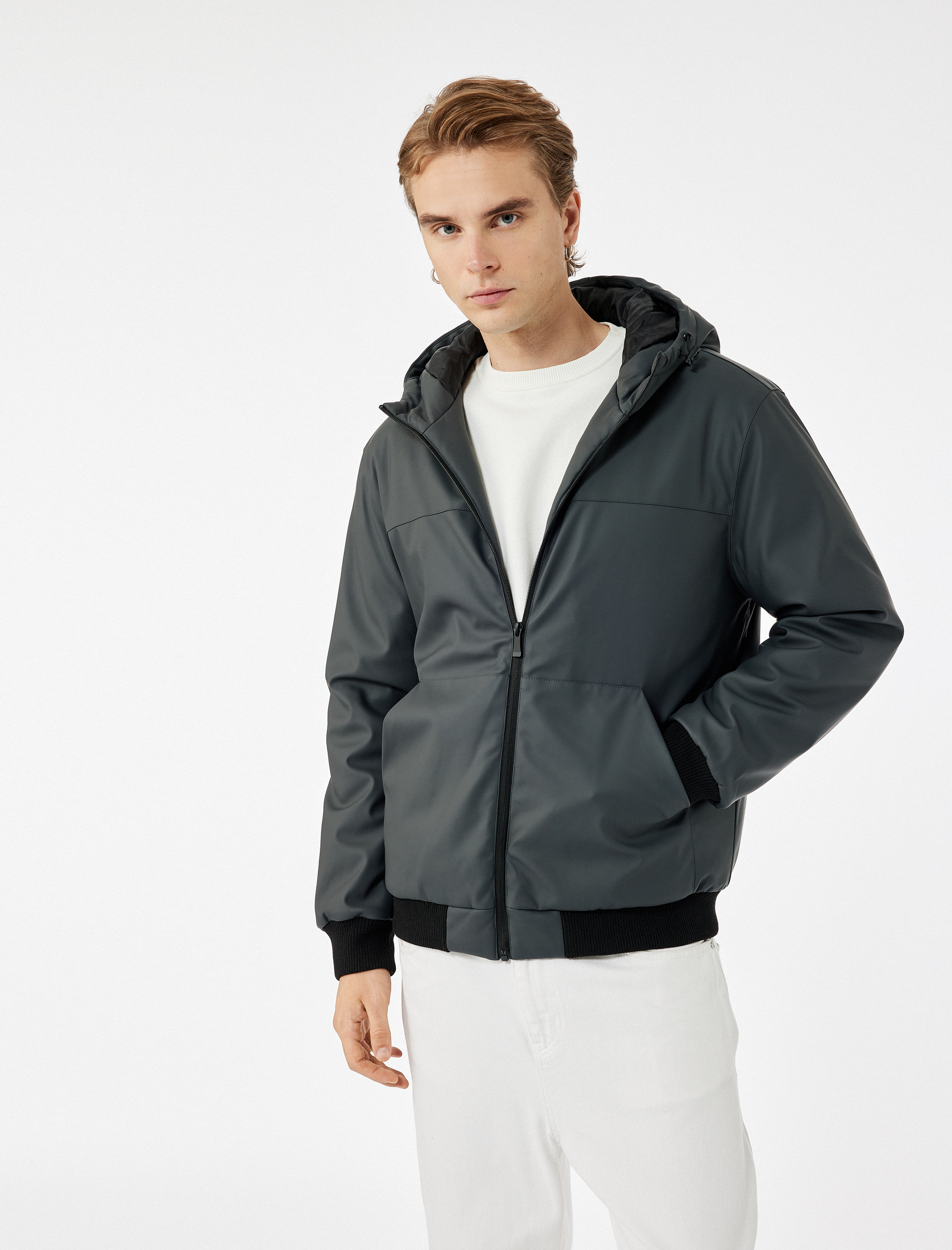 Kapüşonlu Uzun Kollu Fermuarlı Yağmurluk