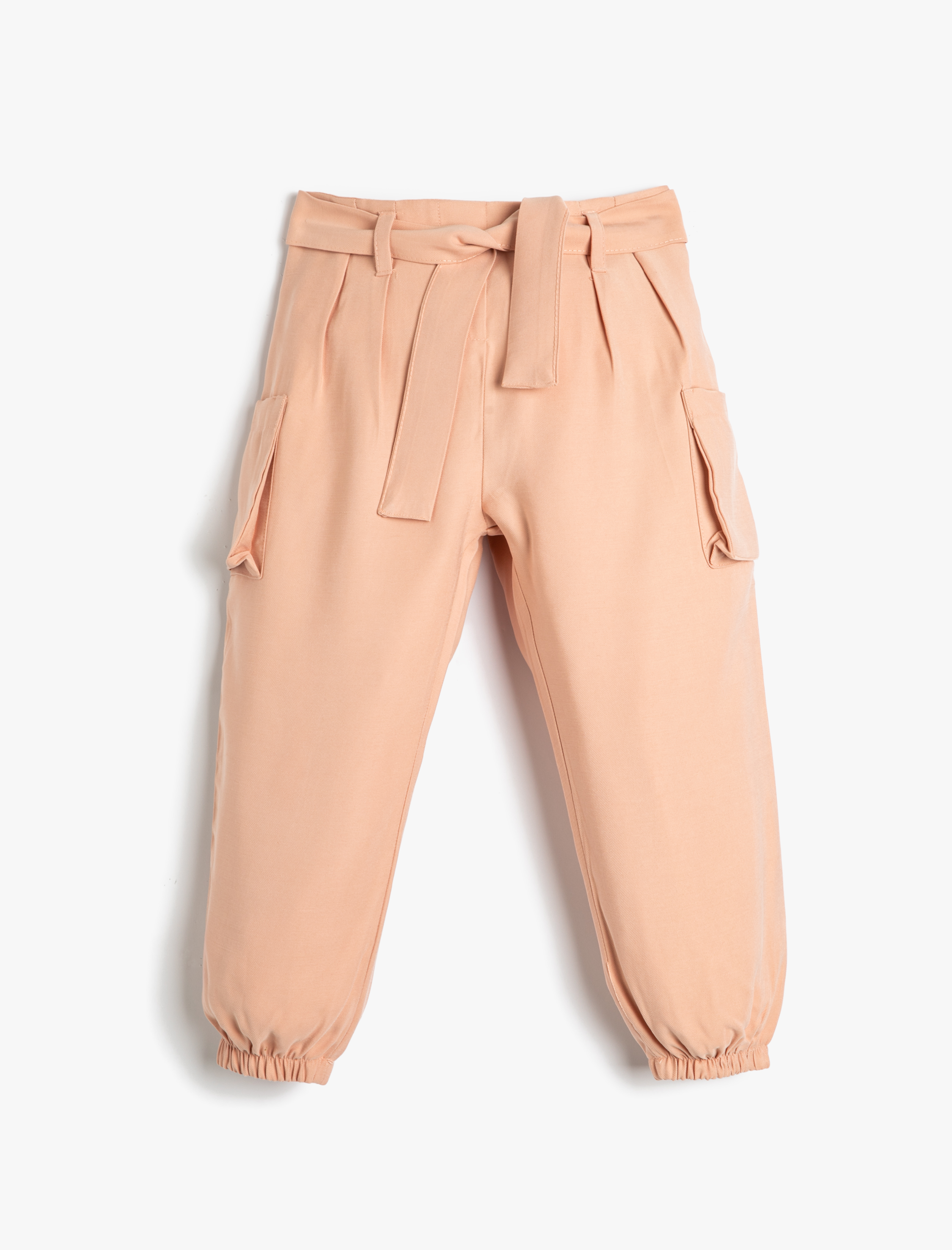 Kız Bebek Kargo Pantolon Jogger Kuşak Detaylı Cepli