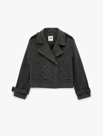 Cepli Düğmeli Uzun Kollu Kruvaze Kısa Kaşe Mont Sepete Ekle