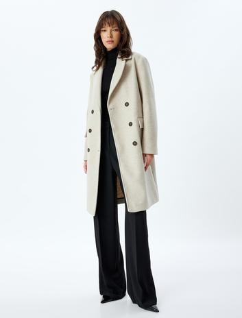 Kaşe Kaban Kruvaze Düğmeli Cep Detaylı