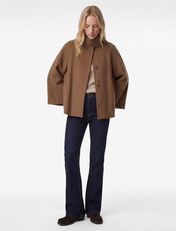 Kısa Pelerin Kaban Kaşe Oversize Dik Yaka Cepli Sepete Ekle