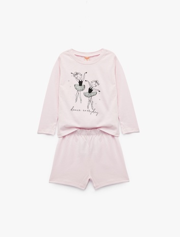 Pamuklu Beli Lastikli Şort ve Uzun Kollu Tişört 2'li Takım Sepete Ekle