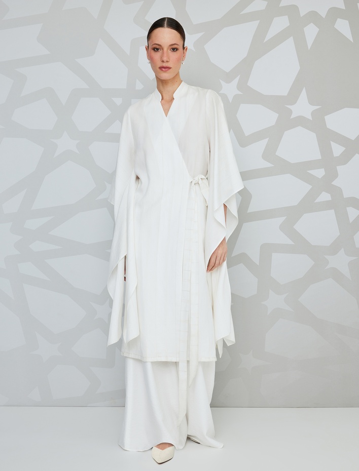 Kemerli Kruvaze Uzun Kollu Bol Kesim Kimono