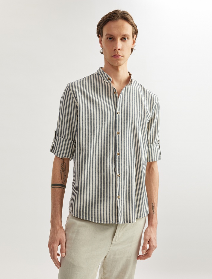 Pamuklu Çizgili Regular Fit Uzun Kollu Hakim Yaka Gömlek