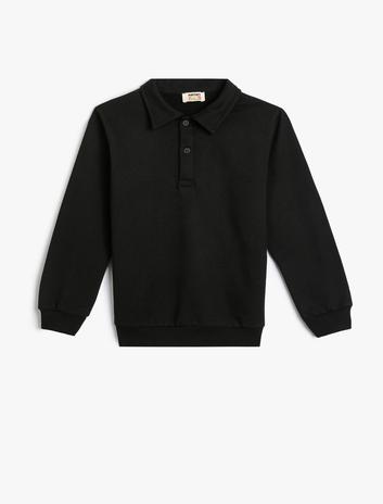 Erkek Çocuk Uzun Kollu Pamuklu Şardonlu Polo Yaka Sweatshirt