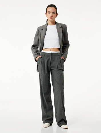 Cepli Pile Detaylı Geniş Paça Baggy Kumaş Pantolon
