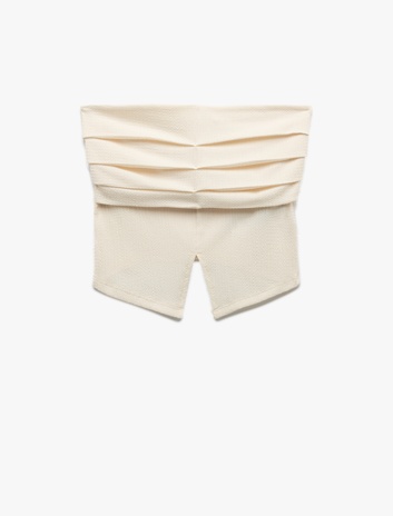 Önden Yırtmaçlı Kat Detaylı Straplez Bluz