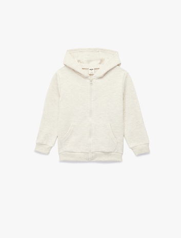 Kapşonlu Dokulu Uzun Kollu Fermuarlı Sweatshirt Sepete Ekle