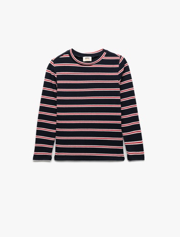 Uzun Kollu Bisiklet Yaka Çizgili Tişört Sepete Ekle