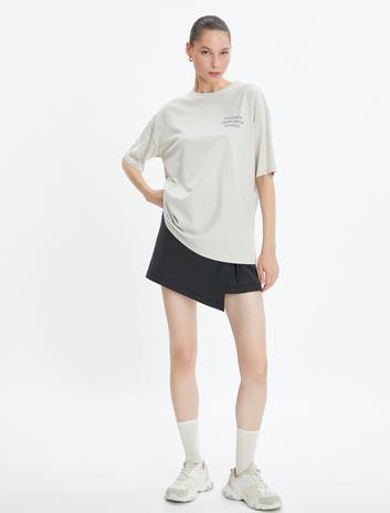 Oversize Spor Tişört Arkası Baskılı Bisiklet Yaka Kısa Kollu Pamuklu