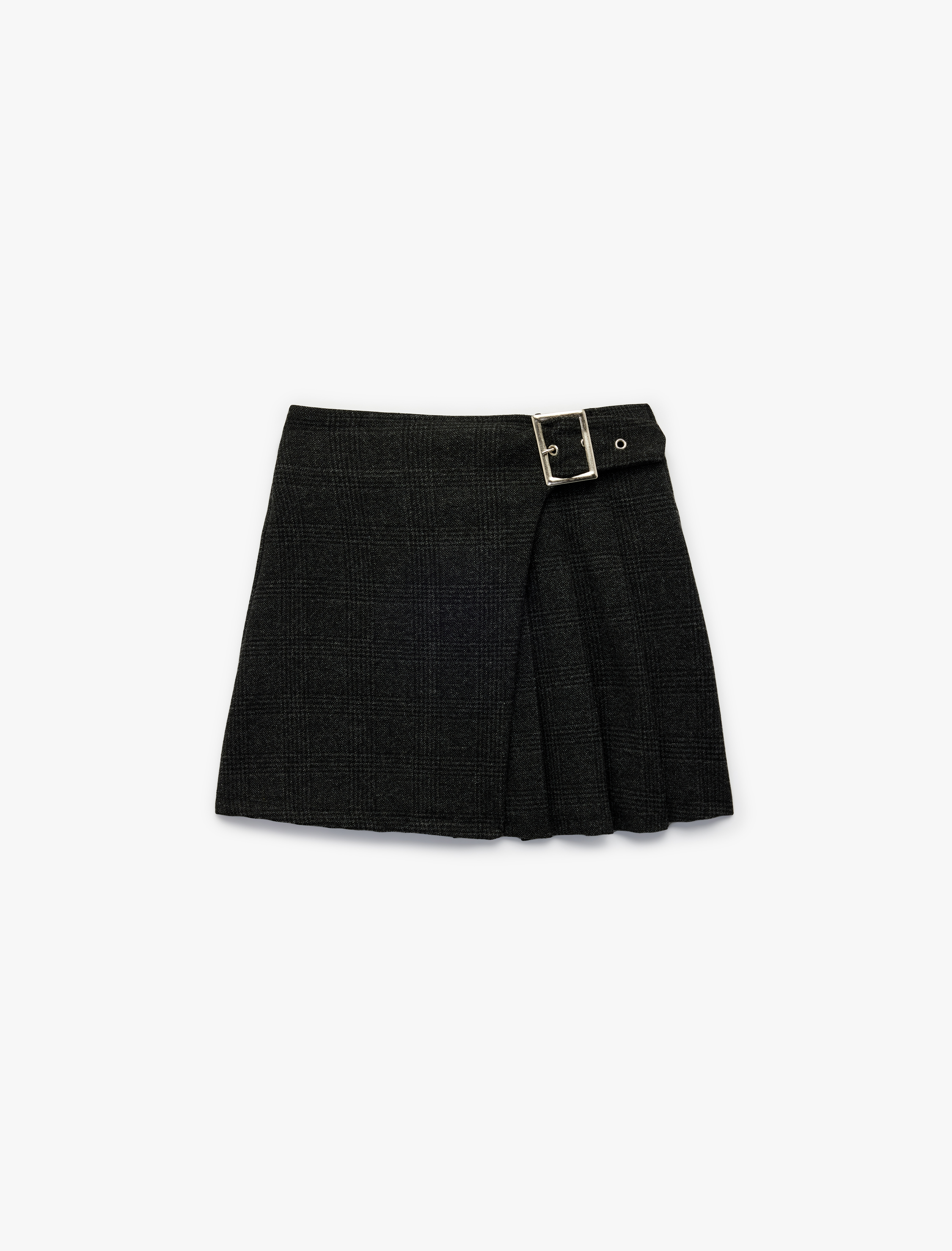Kız Çocuk Kemer Detaylı Viskon Karışımlı Kalın Piliseli Etek
