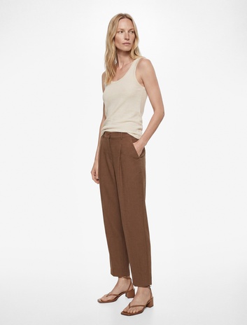 Keten Pantolon Bol Paça Crop