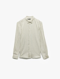 Keten Viskon Karışımlı Regular Fit Klasik Yaka Uzun Kollu Çizgili Gömlek