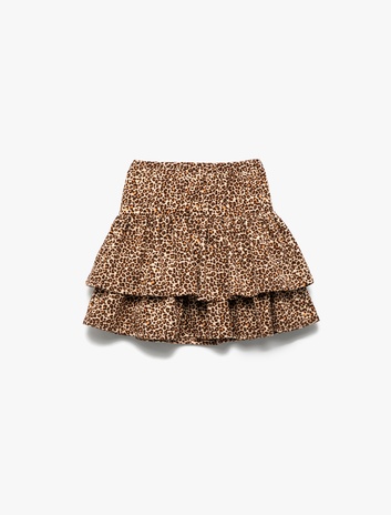Beli Lastikli Katlı Leopar Desenli Şardonlu Etek Sepete Ekle