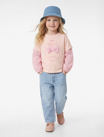 Kız Çocuk Pamuklu Taş Detaylı Geniş Paça Denim Pantolon
