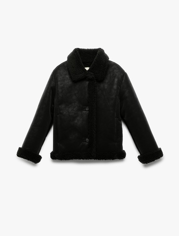 Uzun Kollu Peluş Detaylı Gömlek Yaka Suni Süet Ceket Sepete Ekle
