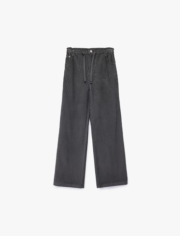 Kız Çocuk Pamuklu Yüksek Bel Bağcıklı Geniş Paça Pantolon