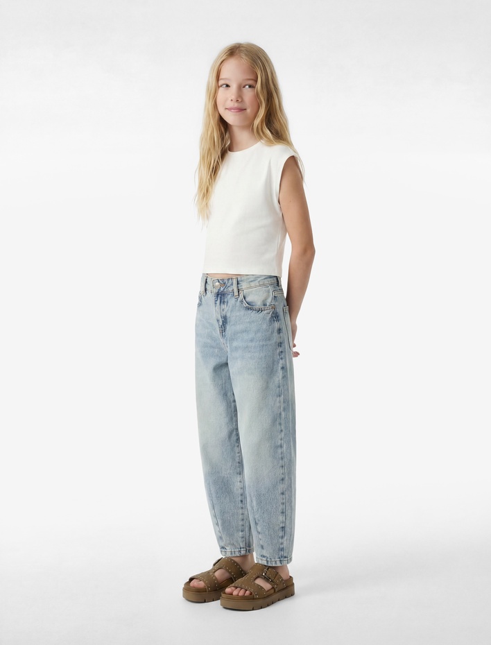 Kız Çocuk Pamuklu Balon Kesim Denim Pantolon