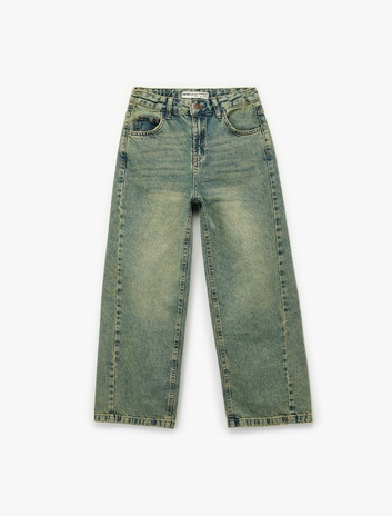 Erkek Çocuk Pamuklu Cepli Rahat Kalıp Yıkamalı Denim Pantolon - Wide Leg Jeans