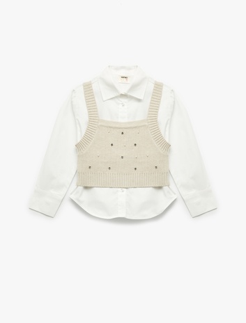 Süveter Detaylı Uzun Kollu Pamuklu Gömlek Sepete Ekle