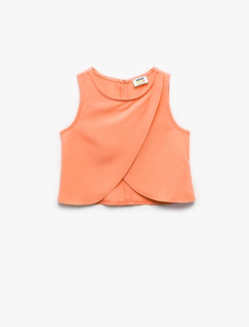 Kız Çocuk Asimetrik Kesim Yuvarlak Yaka Keten Karışımlı Kolsuz Bluz