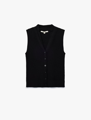 Düğmeli V Yaka Triko Yelek