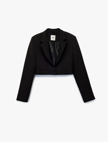 Uzun Kollu Düğmeli Geniş Yaka Crop Blazer Ceket Sepete Ekle