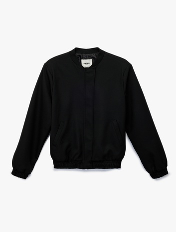 Uzun Kollu Viskon Karışımlı Cep Detaylı Bomber Ceket
