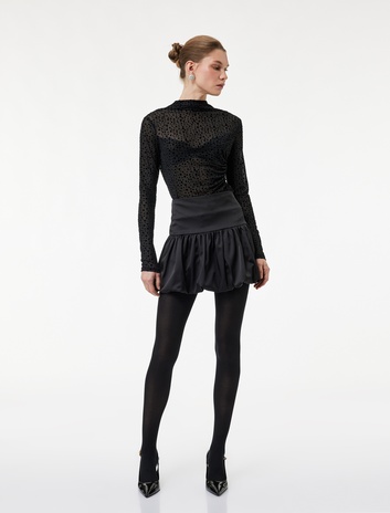 Slim Fit Uzun Kollu Geniş Dik Yaka Puantiyeli Tül Bluz Sepete Ekle
