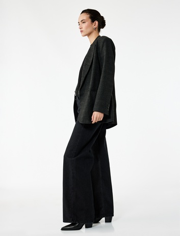 Pamuklu Düğmeli Geniş Paça Taş Detaylı Jean Pantolon -  Wide Leg Jeans Sepete Ekle