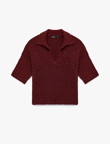 Kısa Kollu Pullu Parıltılı Polo Yaka Triko Kazak Sepete Ekle
