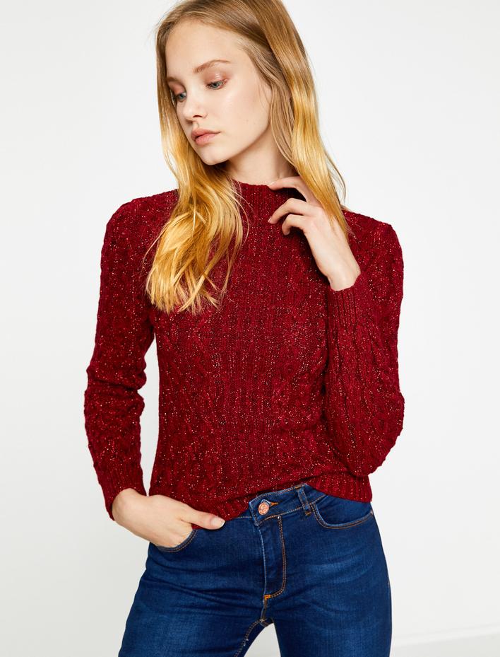 Yarım Balıkçı Yaka Simli Kazak Sepete Ekle