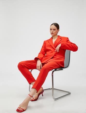 Kırmızı pantolon modelleri gardıroplara güçlü bir ifade katıyor, kombinleri renkli ve canlı bir hale getiriyor. Bu sezon havuç kesim kırmızı pantolon tasarımları yanı sıra kargo formlarla öne çıkan kırmızı pantolon modelleri, beyaz gömlekler ya da aynı ton kırmızı bluzlar ya da tişörtlerle tamamlanıyor. Kırmızı blazer ceketlerle de başarılı ofis görünümleri yaratan kırmızı pantolon çeşitleri, altın rengi büyük küpe ve kolyelerle şıklık dozunuzu arttırıyor. Özetle ister ofiste önemli bir toplantı, ister arkadaşlarınızla dışarıda geçireceğiniz bir gün olsun, kırmızı pantolon kombinasyonu sizi kalabalığın ortasında öne çıkarıyor.