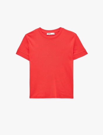 { "id": "8684969512181", "name": "Slim Fit Kısa Kollu Bisiklet Yaka Basic Tişört", "taxonomy":["CITY FASHION","CITY FASHION","WOMEN","JERSEY","TSHIRT SS"], "currency": "TRY", "unit_price": 499.99 , "unit_sale_price": 499.99 , "url": "https://www.koton.com/slim-fit-kisa-kollu-bisiklet-yaka-basic-tisort-kirmizi-4161403-2/", "stock": 123, "color": "KIRMIZI", "size": "M", "product_image_url": "https://ktnimg2.mncdn.com/products/2026/04/16/3228765/26938adc-719e-475b-92b7-e7ca00d05992_size870x1142.jpg" }