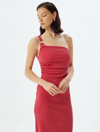 Tek Omuz Kalem Elbise Midi Boy Dokulu Drapeli Slim Fit