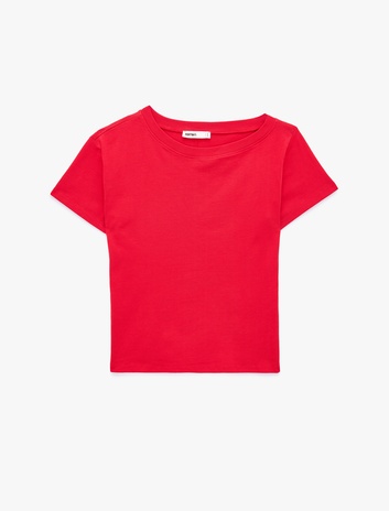{ "id": "8684969512440", "name": "Pamuklu Slim Fit Düşük Omuz Kayık Yuvarlak Yaka Kısa Kollu Tişört", "taxonomy":["CITY FASHION","CITY FASHION","WOMEN","JERSEY","TSHIRT SS"], "currency": "TRY", "unit_price": 599.99 , "unit_sale_price": 599.99 , "url": "https://www.koton.com/pamuklu-slim-fit-dusuk-omuz-kayik-yuvarlak-yaka-kisa-kollu-tisort-kirmizi-4163822-2/", "stock": 208, "color": "KIRMIZI", "size": "L", "product_image_url": "https://ktnimg2.mncdn.com/products/2026/04/16/3228591/8fa9f41c-8bd0-4207-a306-697eaa77d051_size870x1142.jpg" }