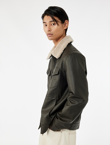 Mandarin Yaka Uzun Kollu Fermuarlı Deri Ceket