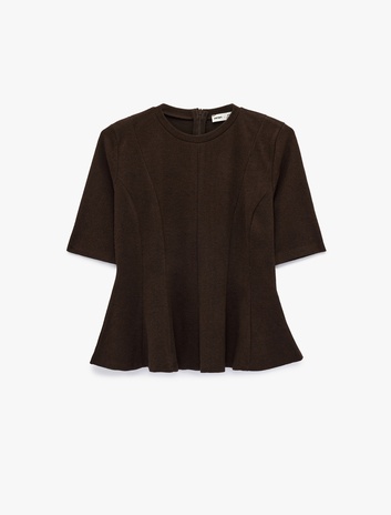 Koton X Şahika Ercümen - Kısa Kollu Bisiklet Yaka Peplum Tişört Sepete Ekle