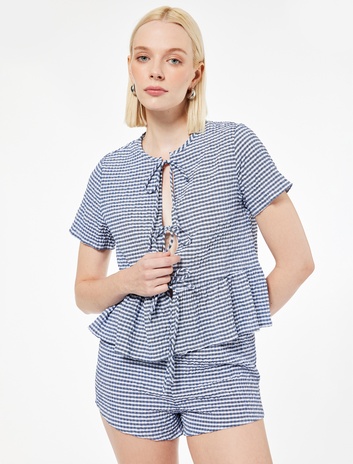 Bağlama Detaylı Rahat Kalıp Kısa Kollu Pijama Üstü