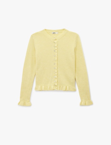 Bisiklet Yaka Düğmeli Fırfırlı Triko Hırka